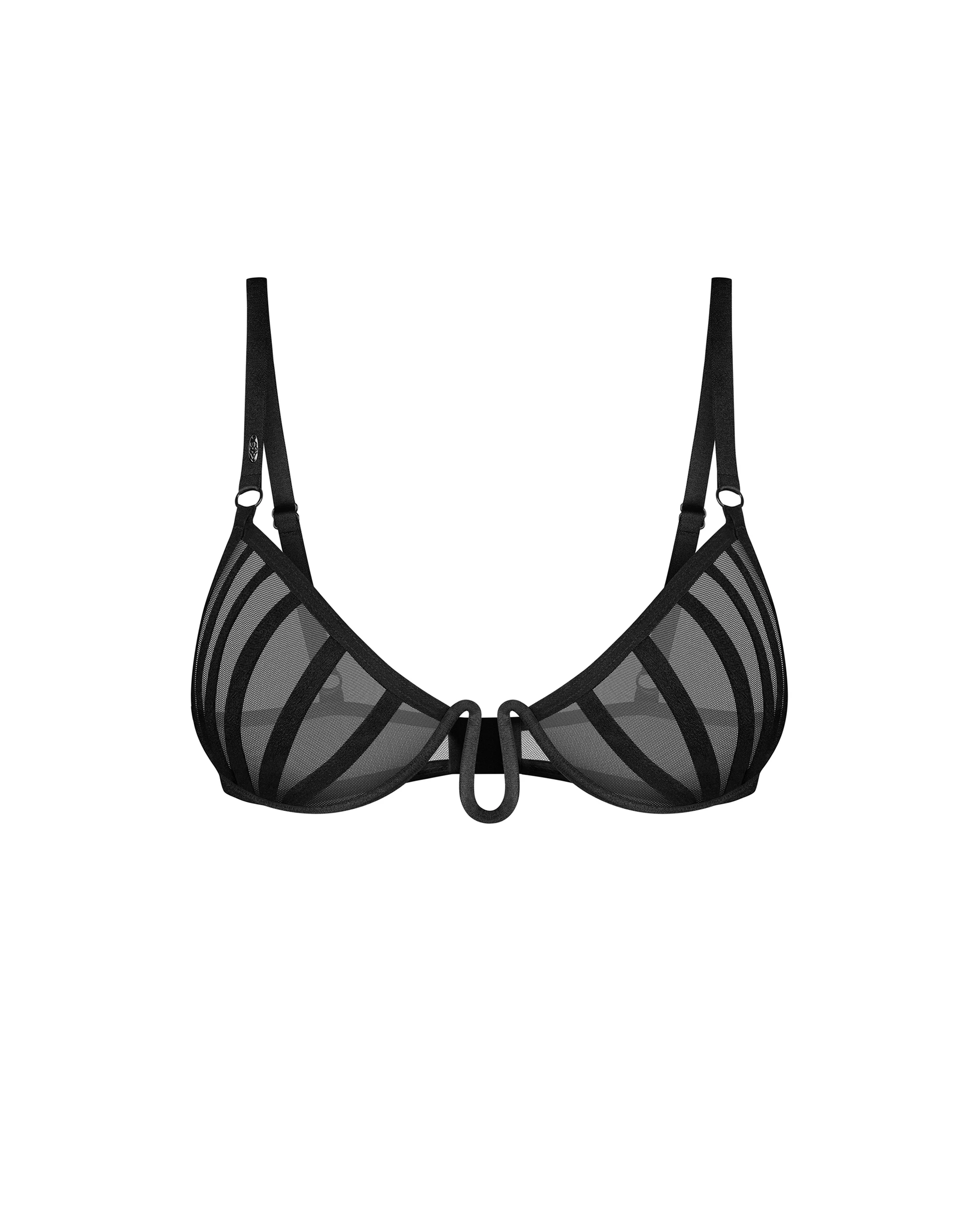 A sensual half-bra crafted from transparent mesh and adorned with unique geometric stitching details that catch the eye. Delicate boning provides gentle support while showcasing your bust's natural, beautiful shape. Adjustable straps and a three-stage back closure ensure comfortable wear and perfect customization. The sinuous focal point commands attention with its hypnotic curves, defying conventional lingerie aesthetics to become a provocative centerpiece in your intimate arsenal.
