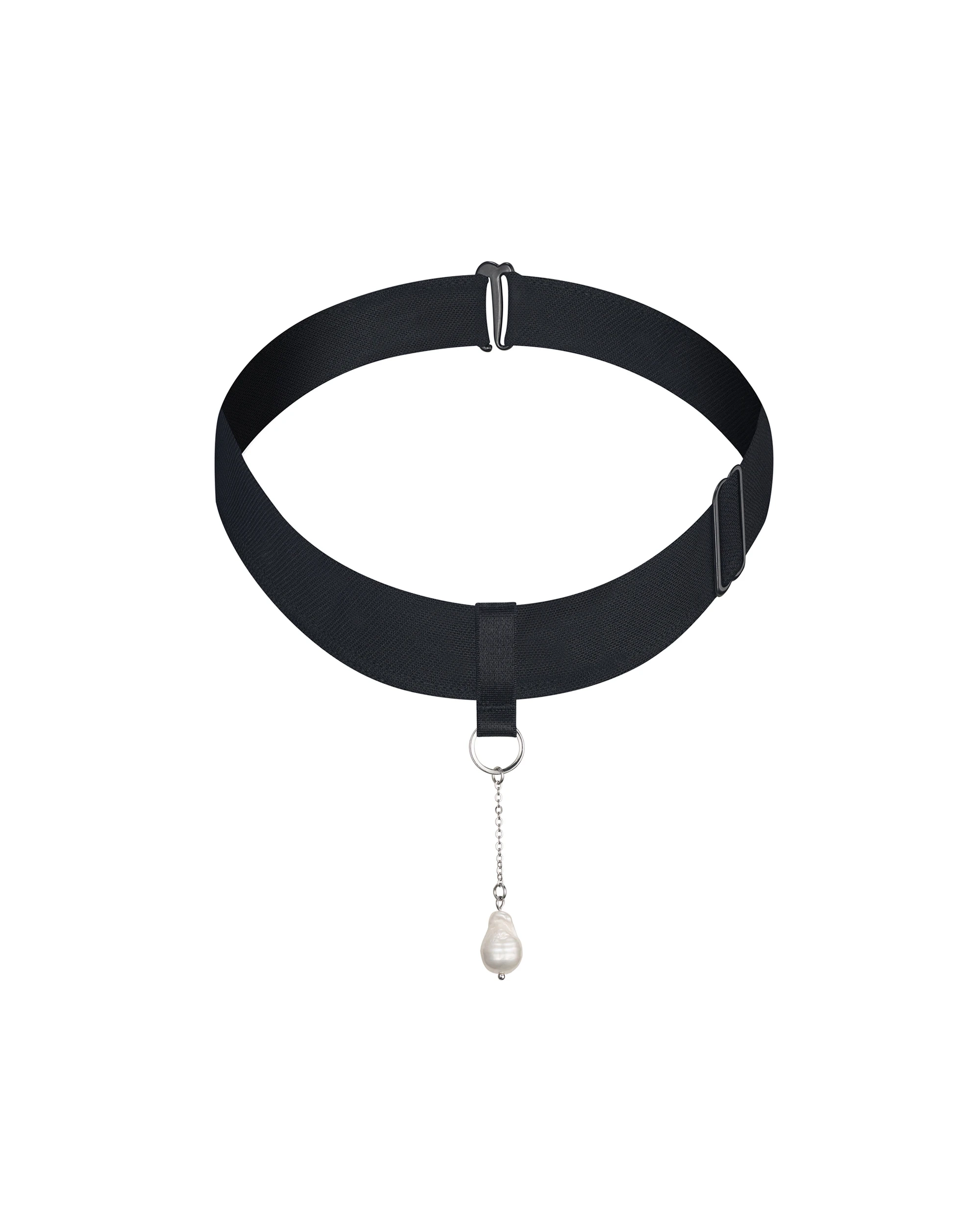 A minimalist choker that captivates with its subtle detail and hypnotic allure. The adjustable, elastic fabric ensures a perfect fit around your neck, while the freshwater pearl suspended from a silvery chain adds a touch of sophisticated elegance and lustrous charm. Delicate yet distinctive, this beguiling choker completes your Aurorium ensemble with a final caress – a barely-there accent that lingers like a whispered promise against your skin.